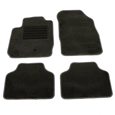 Needle felt rug 600g/m² for more comfort and stability Black border with white stitching for more style Ideal hold of the 2 front floor mats thanks to a Velcro attachment and optimal grip of the rear floor mats thanks to their granulated backside Textile heel booster on the driver mat, prevents premature wear of the floor mat