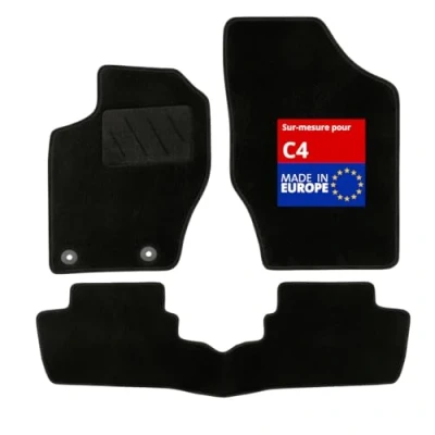 Custom-made for CITROËN C4 (11/2004 to 09/2010) 2 car mats for front + 1 car mat with bridge for rear Exclusive anti-slip system : AUTOGRIP Original fixation clips Needled carpet 900g/m² - finish in velour: constructor quality