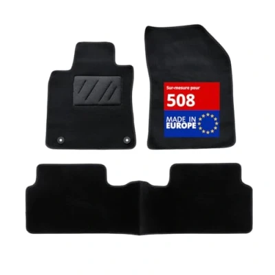 Custom-made for PEUGEOT 508 (11/2010 to 2018) 2 car mats for front + 1 car mat with bridge for rear Exclusive anti-slip system : AUTOGRIP Original fixation clips Needled carpet 900g/m² - finish in velour: constructor quality
