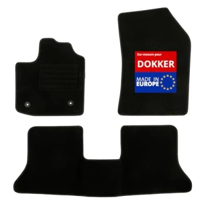 Custom-made for DACIA Dokker (11/2012 to 2018) 2 car mats for front + 1 car mat with bridge for rear Exclusive anti-slip system : AUTOGRIP Original fixation clips Needled carpet 900g/m² - finish in velour: constructor quality