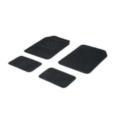 Content of the product: 2 floor mats at the front + 2 floor mats at the back (550g/m² carpet, offers a high level of comfort) Two-tone border that gives style to the floor mat and your vehicle interior (various colors available) Granulated backside for an ideal and long-lasting hold of the floor mat in the vehicle compartment Textile heel booster on the driver's mat for more robustness