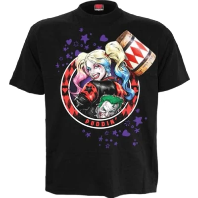 DC Comics Harley Quinn Puddin' Front Print T Shirt Black, L