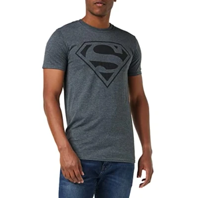 DC Comics Men's Mono Superman T Shirt, Grey (Dark Heather), XXL