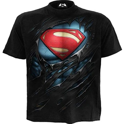 Officially licensed Warner Bros and DC Comics merchandise. The popular red and yellow Superman logo can be seen through a torn t-shirt, which also makes it possible to distinguish Clark Kent's suit. This black t-shirt is made of 100% best quality cotton jersey, dyed with AZO free reactive dyes, skin friendly. Founded in 1990, Spiral has continued to improve its merchandising catalog for the heavy metal and Gothic sectors. Spiral is not just a brand, but a WAY OF LIFE! This is the meeting point for art and fashion. Spiral's designs encompass a variety of styles, from tribal, gothic, horror, fantasy and fetish to the most adorable. Here you will also find the Spiral version of several characters from series and movies in very durable screen prints. This is just one of the many products from Spiral's huge alternative fashion catalog!