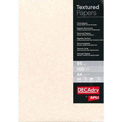 AUTHORITY - Add authority and quality to your presentations with Decadry Textured Papers PACK OF - 100 Double sided textured A4 paper MULTIFUNCTIONAL - Can be used with Inkjet & Lasier printers as well as copiers and handwriting INNOVATION - Quality and service are the basic fundamentals of our daily activity DECADRY - DECAdry, is one of the leading company in the manufacture of special papers and business cards, in the Benelux market. With an experience of more than 20 years, DECAdry has for main goal to satisfy the customers’ needs in the office and computer segments