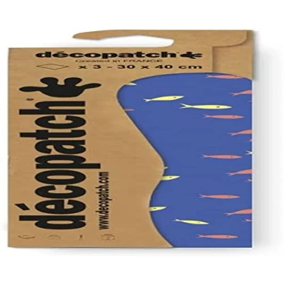 Décopatch C883C A pocket of 3 sheets paper Printed patterns, fluorescent effect fish 30x40 cm