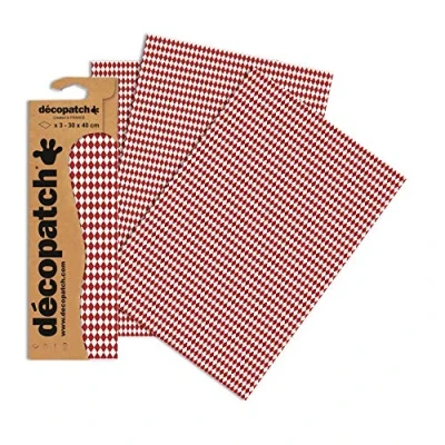 Décopatch Ref C738O Red & White Harlequin Pattern Paper Pack Each Sheet 30 x 40cm, of 3 Sheets Best Used With Décopach Glue Varnish,