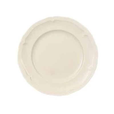 Timelessly elegant bread plate with finely carved relief for serving bread as a side dish for brunch, lunch or dinner Ideal size for preparing bread slices, baguettes or small rolls, Can also be used for desserts or salads, Visual eye-catcher Thanks to handy shape also Ideal for use when catering, Can be carried with one hand, Can be stacked inside each other, Dishwasher safe Dishwasher and microwave safe, High quality: Premium Porcelain made in Germany Contents: 1x Villeroy & Boch Manoir bread plate (17 cm), Material: Premium Porcelain, Colour: white