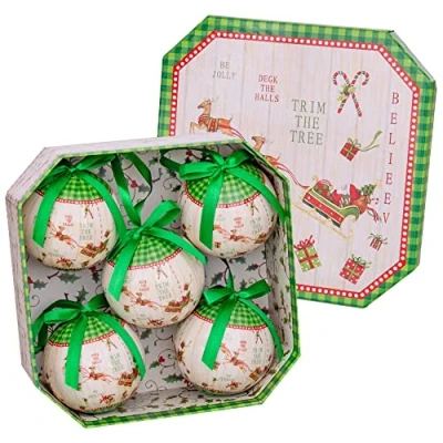 Decorated Box with 5 Christmas Balls Sled 70 mm