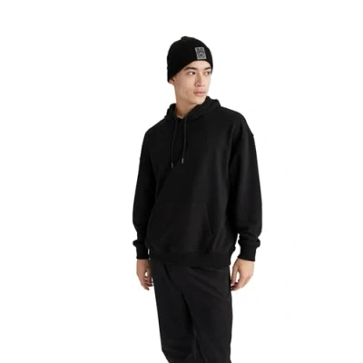 DeFacto Men's Hooded Sweatshirt, Black, S