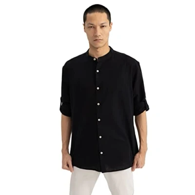 DeFacto Men's Shirt, Black, S