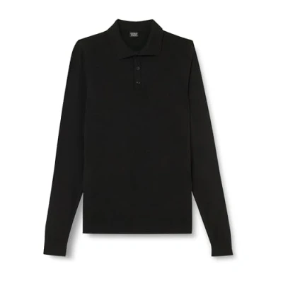 DeFacto Men's Sweaters & Cardigans Versatile Pullover for Men Slim Fit Polo Neck, black, S