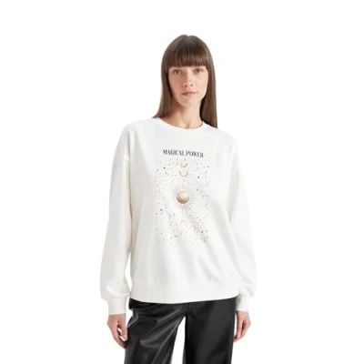 DeFacto Women's Pullover Modischer Sweatshirt Und Kapuzenpullover Für Damen Auswahl an Hoodies, Ecru, M