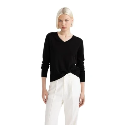 DeFacto Women's Strickmode Strickpullover Blusen Tuniken für Damen Pullover Feinstrickpullover Strickjacken und Pulli Sweater, Black, S