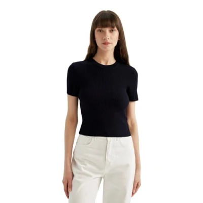 DeFacto Women's Strickmode Strickpullover Blusen Tuniken Für Damen Pullover Feinstrickpullover Strickjacken Und Pulli Sweater, Navy, S