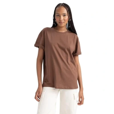 DeFacto Women's T Shirt, Brown, M