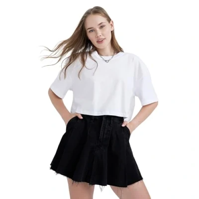 Trendy women's tops for the summer: perfect for the warm season High-quality women's T-shirt with a classic cut: a timeless basic for any wardrobe. COMFORTABLE ALL DAY WEAR - The ideal T-shirt for everyday wear. Versatile: Whether casual with jeans or chic with trousers, this t-shirt will go with any look. FASHION DESIGN & HIGH QUALITY: DeFacto women's t-shirt is a must-have for fashion conscious women.