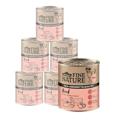 Dehner Fine Nature Dog Food, Food Grade Wet for Adult Dogs, Beef, 6 x 800 g Tin (4.8 kg)