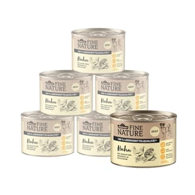 Dehner Fine Nature Dog Food, Food Grade Wet for Adult Dogs, Chicken, 6 x 200g Tin (1.2kg)