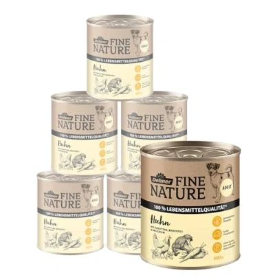 Dehner Fine Nature Dog Food, Food Grade Wet for Adult Dogs, Chicken, 6 x 800 g Tin (4.8 kg)