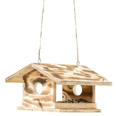 High-quality feeding station for year-round wild bird feeding Made from flamed wood, handmade in Lower Bavaria The protruding roof protects birds and food from moisture Ideal for garden, balcony or terrace Easy to fill, easy to hang