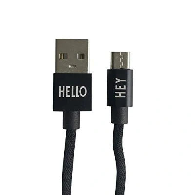 PERSONAL CABLE: Micro USB-C cable for Android phones with engraved HELLO and HEY. TECHNICAL DATA: USB 2.0. Length: 1 meter. CERTIFICATION AND COMPLIANCE: CE, RoHS and REACH. ACCESSORIES: Use the Design Letters charger for your cable. Choose between different styles and colors (sold separately) MATERIAL: Braided ballistic nylon.