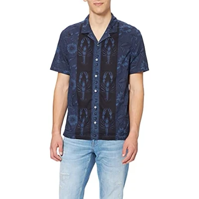 Desigual Man - Man's short sleeve shirt with floral print Blue short sleeve button-fastened shirt in 100% cotton fabric and print of flowers with lobsters. New Desigual Man FW21 collection. Print of flowers with lobsters Patch on the sleeve with the Desigual logo in iridescent effect Machine Wash Cold Inside Out Separately