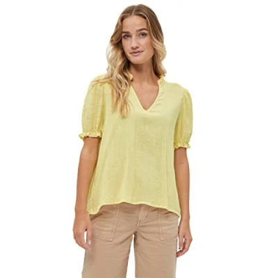 Desires Women's Cabena Short Sleeve V Neck Blouse, 6107 Canary Yellow, XS