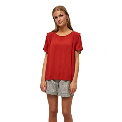 Desires Women's Debbi Short Sleeve Blouse, 8876 Burnt Red, XS