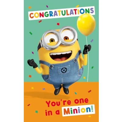 DESIGN: Delightful Despicable Me themed congratulations card featuring vibrant multicoloured decorative patterns for a cheerful celebration PREMIUM QUALITY: Professionally printed on high-grade paper stock ensuring superior finish and lasting durability DIMENSIONS: Standard size greeting card measuring 22.86 x 12.7 centimetres, perfect for displaying and sending COMPLETE SET: Includes a matching envelope, making it ready for your personal message and immediate gifting PRESENTATION: Thoughtfully crafted with elegant styling and professional finish, ideal for expressing congratulations