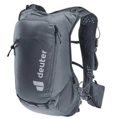 Close fit thanks to shoulder straps with elasticated compression strap Condensation protection on the back Holder of shoulder strap to attach walking poles Compatible with drinking system (deuter Streamer 2.0 and Streamer Flask - not included) Main material consists of 100% recycled materials and is bluesign-certified