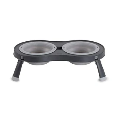 Dexas Pets Double Elevated Pet Feeder, 2.5 Cup Bowls, Light Gray