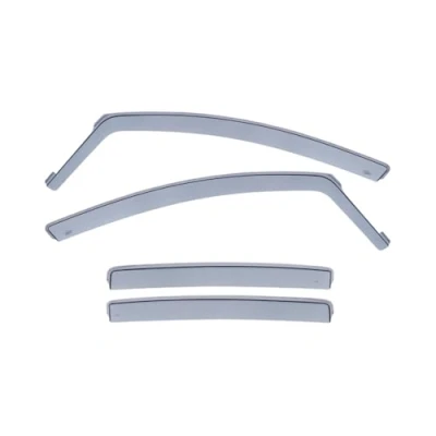 Vehicle specific fit ensures precise and perfect fit Allows natural ventilation inside the vehicle in all conditions Reduces wind noise and turbulence at higher speeds Durable, UV resistant materials for long-lasting performance Complete set for side doors - smoke grey colour
