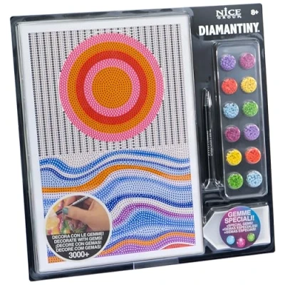 DIAMANTINY LEVEL UP: This is the crystal art activity to create DIY mosaics, embossed, with colorful 3D gemstones. Available in BAUHAUS Model 2 to gem version. TECHNIQUE: To decorate the Bauhaus style sunset mosaic you need to use the "crystal art, color by numbers" technique, applying the gems to the numbers. The instruction sheet guides you through the application. FUNCTION: This activity is very simple and relaxing. Helps children and young people develop dexterity, coordination and concentration. Contents: the set contains 1 picture measuring 21 x 29.5 cm with adhesive base and colour guide, 3000+ coloured crystals, 1 binder tray, 1 pen with which to apply them and 1 square of wax. Original Diamantiny product. Recommended age: 8+, Manufacturer: Nice SRL