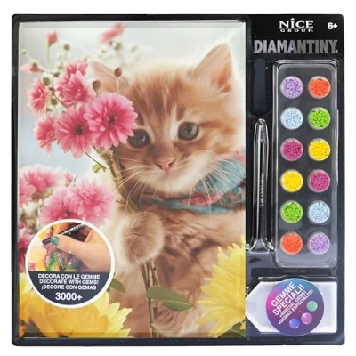 DIAMANTINY LEVEL UP: This is the new crystal art activity to create DIY mosaics with colourful 3D gemstones. Available in PETS Kitten to gem version. TECHNIQUE: To decorate the kitten mosaic you need to use the "crystal art, color by numbers" technique, applying the gems to the numbers. The instruction sheet guides you through the application. FUNCTION: This activity is very simple and relaxing. Helps children and young people develop dexterity, coordination and concentration. Contents: the set contains 1 picture measuring 21 x 29.5 cm with adhesive base and colour guide, 3000+ coloured crystals, 1 binder tray, 1 pen with which to apply them and 1 square of wax. Recommended age: 8+, Manufacturer: Nice SRL