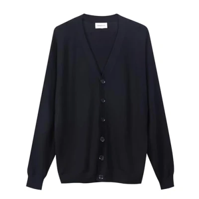 Diana Studio, Basic Men's Cardigan 100% Extra Fine Merino Wool Long Sleeves, Black, L