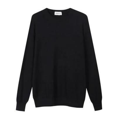 Diana Studio, Men's Basic Crew Neck Pullover 100% Extra Fine Merino Wool Plain Long Sleeves, Black, XL