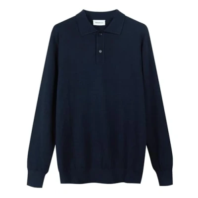 Diana Studio, Men's Basic Polo Shirt 100% Extra Fine Merino Wool Plain Long Sleeve, Blue, S
