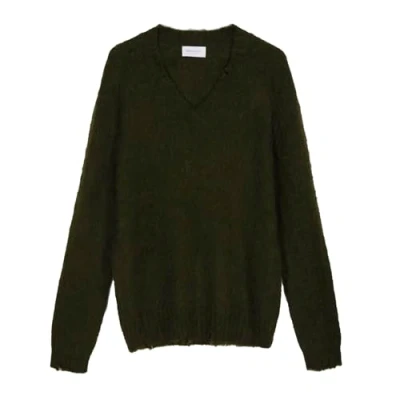 Diana Studio Men's Brushed V Neck Sweater, dark green, S