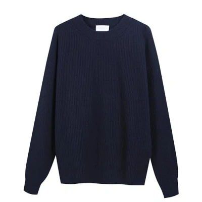Diana Studio Men's Crew Neck Knitted Wool Sweater, blue, M