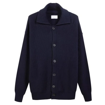 Diana Studio Men's Merino Wool Button Down Jacket Long Sleeve Casual Fit, blue, M