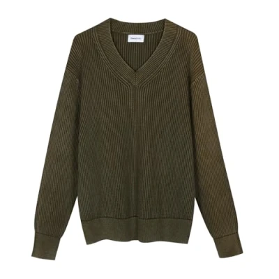Diana Studio Men's V Neck Cotton Knitted Pullover, army green, M