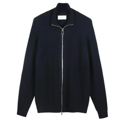 Diana Studio Men's Wool Long Sleeve Casual Fit Knitted Zip Jacket, blue navy, L