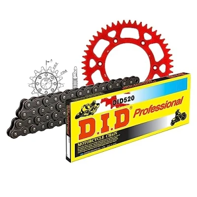 Perfectly coordinated MXT chain set made from high-quality individual parts from the premium brands D.I.D and Supersprox. The original gear ratio of the bike is retained. Chain: DID Standard 520 / 112 clip lock FJ steel (5/8 x 1/4 x 10.16) - [ Chain wheel ] Supersprox 520 LK 153.0 mm diameter 125 mm 49 teeth 6-hole aluminium red - [ Sprocket ] Supersprox 520 1 3Z D.I.D is a manufacturer of drive chains and other products for the motorcycle and automotive industry. In addition to drive chains, the company also sells sprockets, chain kits and other drive elements that play an important role in improving the performance and safety of vehicles. Heavy duty chain, durable sprocket and reliable sprocket for a smooth ride Suitable for Honda CR R 250 ccm year of manufacture 1992-1993