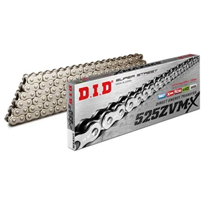 DID Chain 525 ZVMX, 122 Links (X Ring Chrome), Open with Rivet Lock