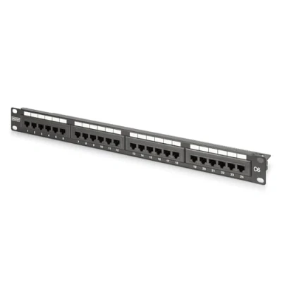 DIGITUS 19 inch patch panel CAT 6 LSA 24 port RJ45 Unshielded Rack mount 1U Black