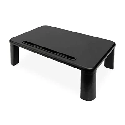 The monitor riser improves your viewing position and frees up space on your desk - storage space for keyboard and mouse underneath the monitor stand. Thanks to a load capacity of 10 kg and the dimensions 40 x 28 cm, the screen riser is suitable for monitors up to 32 inches. The height of the stand can be varied between 7.1, 10.8 and 14.5 cm. The use of monitor risers has a positive effect on the ergonomics of your workplace and thus directly on your health, as you no longer have to constantly lower your head. Alternatively, you can also use the stand to position your notebook and do without an additional monitor in conjunction with the external mouse and keyboard. The desk attachment contains a black support plate with a thickness of 1.5 cm and reaches a weight of 1.5 kg with all installed modules at full height.