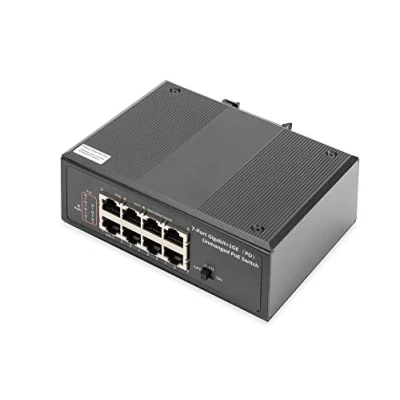 DIGITUS Industrial 7 port Gigabit PoE+Switch+1 PD IEEE802.3af/at, DIN rail, extended temp.range