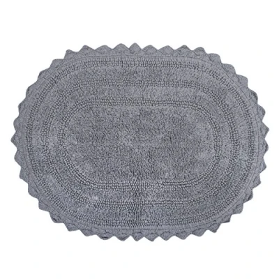 DII Crochet Collection Reversible Bath Mat, Large Oval, 21x34, Gray