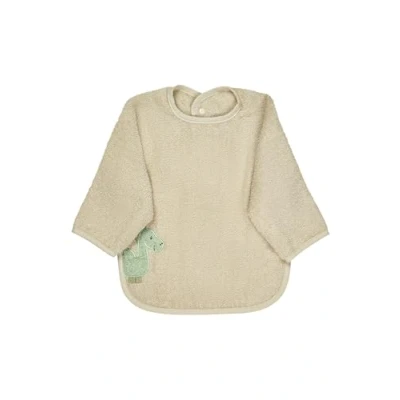 Unisex baby bib with sleeves made of high-quality terry cloth (100% cotton) with dinosaur embroidery and practical press studs on the back. Ideal for home and travel. Practical helper for baby and toddler at meals. Sleeved bibs are valuable in the basic equipment for the offspring when the little ones start taking meals independently. High-quality workmanship in the usual Sterntaler quality and carefully edged with a piping. Machine washable at 60°C and tumble dryer-safe. Gift idea for many occasions, such as birth, christening or baby shower party. Great to complement with other products for care and equipment of the Dino Rexi.